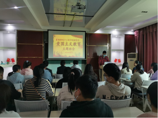 图1. 太阳成集团tyc122cc组织全体在校研究生自发开展“爱国主义教育”主题班会