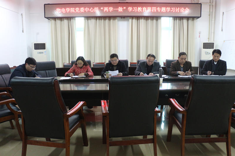 12月8日下午,物电公司党委中心组在理科楼911会议室举行“两学一做”学习教育第四专题学习讨论会。公司党委中心组全体成员参加了本次学习讨论,会议由公司党委书记柳士刚主持。