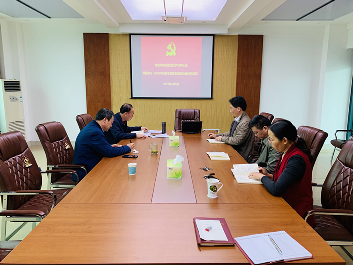 4月9日下午,太阳成集团tyc122cc党委理论学习中心组在理科楼北楼911会议室专题学习《中共中央关于加强党的政治建设的意见》。公司党委书记柳士刚主持学习会,公司党委理论学习中心组成员参加了会议。