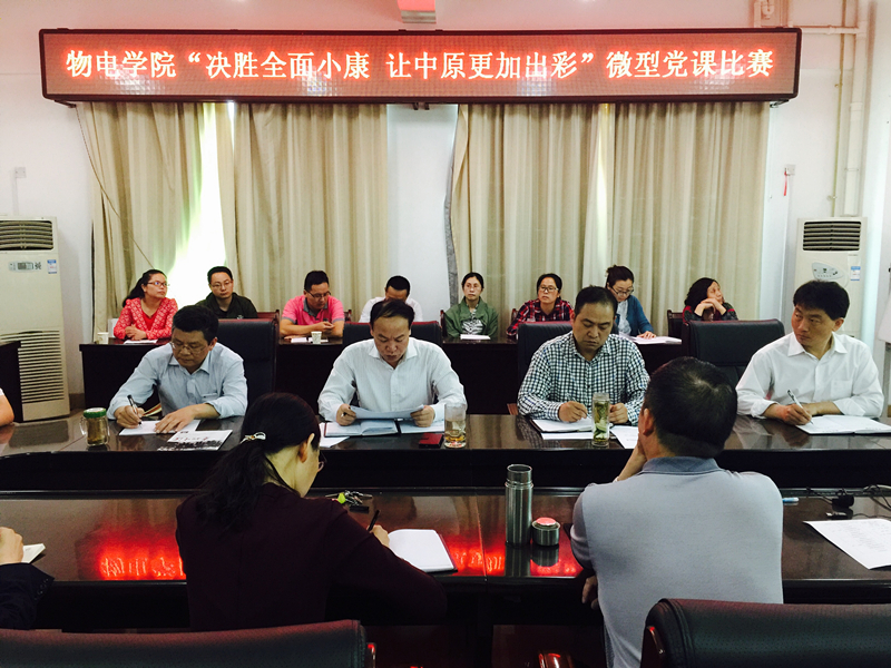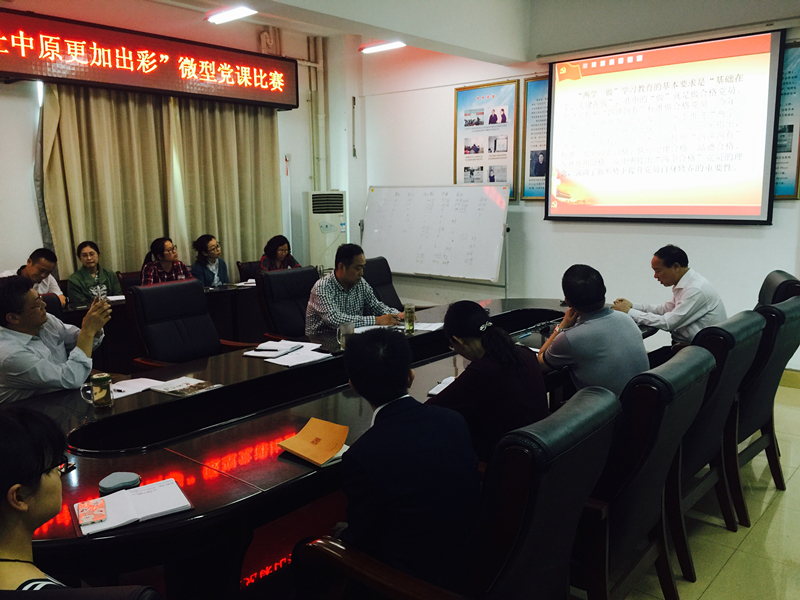 5月16日,太阳成集团tyc122cc“决战全面小康,让中原更加出彩”微型党课比赛在理科楼911会议室举行。公司党委书记柳士刚、副书记李刚、经理孙宜海、仓玉萍及教工党员参加了比赛。