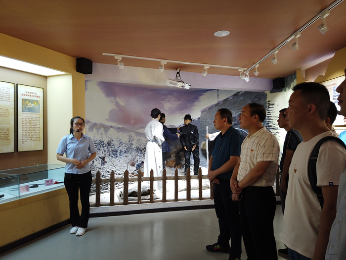在大别山商城革命历史纪念馆,支部党员面对党旗重温了入党誓词,进一步教育引导全体党员同志牢记党的宗旨,牢记为人民谋幸福、为民族谋复兴的初心使命,立足本职岗位、勇担责任使命。随后,教工党支部开展了以“缅怀商城起义革命先烈,传承大别山精神文化”为题目的现场党课,党课由大别山商城革命历史纪念馆赵老师主讲,大家参观了当年商城革命的图片和实物,一幅幅感人的照片,一段段震撼的历史,一个个生动的故事,金刚台“山山埋忠骨,岭岭皆丰碑”的革命精神让大家深受感染,金刚台妇女排的故事震撼心灵。最后,支部党员开展了“寻找妇女排”红色主题活动。