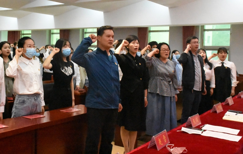 会议在庄严的国歌声中拉开帷幕。会上,公司为在去年五月份入党的毕业生党员颁发政治生日卡。政治生日卡上矗立着一座立体的南湖红船,卡片上印有入党誓词、党员姓名、入党日期、入党介绍人和党组织寄语。旨在勉励毕业生党员在未来的工作岗位上,牢记开天辟地、敢为人先,坚定理想、百折不挠,立党为公、忠诚为民的红船精神,不忘初心,不负韶华,为校增光,为国添彩。随后,由党委书记刘百超领誓,与会党员面向党旗,高举右拳重温入党誓词,大家神情庄重、声音铿锵。通过重温入党誓词,激励毕业生党员再一次体会到作为一名中国共产党党员的责任感和使命感。毕业生党员代表杜聪聪在发言中表达了在即将开始的新征程中继续践行党的宗旨、坚守党员初心、履行党员义务的坚定信念。