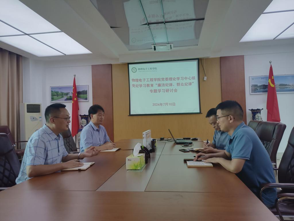 7月10日,公司党委理论学习中心组在理科楼911室围绕“廉洁纪律、群众纪律”进行专题集体学习研讨。公司党委理论学习中心组成员参加学习研讨。学习研讨由公司党委书记方明科主持。