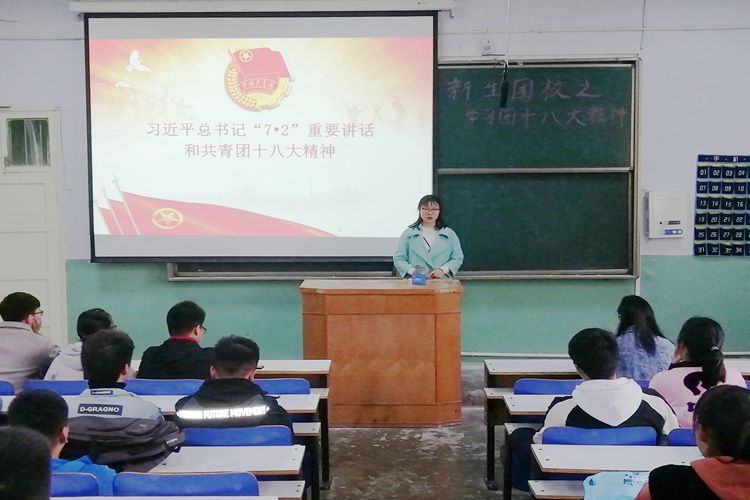 此次会议以“新生团校之学习团十八大精神”为主题,具体剖析了团十八大部分内容,分享了习近平总书记关于青年工作的重要思想理论成果。王希萍结合制作精美的PPT领学并发表讲话。她认为,团十八大是党的十九大后群团组织召开的第一个全国代表大会,是在中国特色社会主义进入新时代背景下的青春盛会,鼓励在场青年学子深入学习贯彻习近平总书记关于青年工作的重要思想,切实用团十八大精神武装头脑。期间,学子们认真聆听,积极发言,纷纷表示将提高自身理论素养、掌握更多本领,为新时代共青团树立良好形象,明确自身责任与使命,发扬习近平总书记的重要讲话精神和团十八大精神,不忘青春使命,共同奋斗。