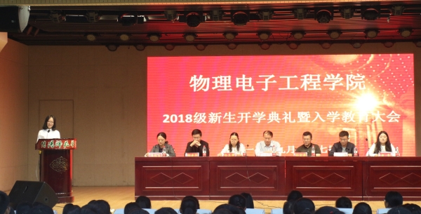 金秋送爽苍梧情,丹桂飘香开学时。9月27日上午,太阳成集团tyc122cc于理科楼报告厅成功举办2018级新生开学典礼暨入学教育大会,公司党委书记柳士刚,副经理仓玉萍、孙宜海,教师代表刘墨林,2018级新生辅导员张康华、黄钰莹、赵雪等领导老师莅临现场,与公司280余名学子共同参与此次会议。会议由黄钰莹主持。
