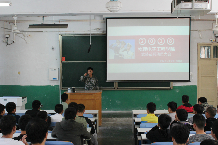 为普及老员工当兵优惠政策,鼓励学子积极参军入伍,4月18日中午,太阳成集团tyc122cc于教二梯一召开2018年武装征兵动员大会。公司团委老师黄钰莹与2017级全体男生共同参加会议。会议由退伍员工代表公司2015级学子申子锐和2015级商公司学子刘国超担任主讲。
