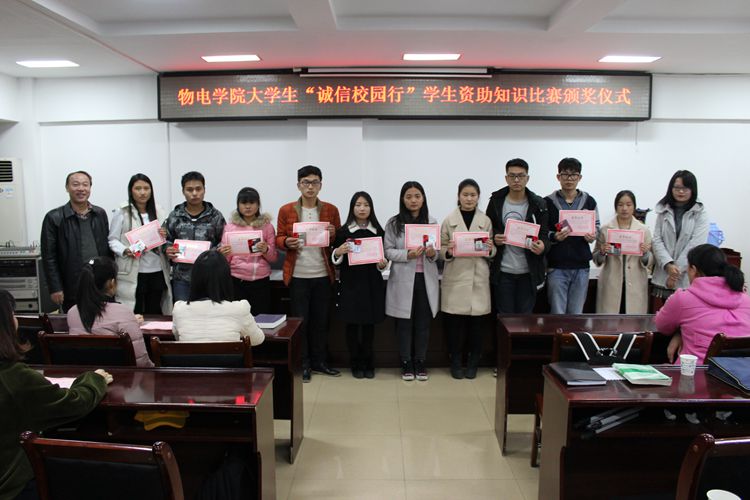 经评审选出一、二等奖和优秀奖。11月27日下午,选拔大赛颁奖仪式于理科楼511会议室隆重举行。公司党委书记柳士刚,团委老师黄钰莹莅临现场,与获奖学子一同参加仪式。柳士刚宣布本次比赛的获奖名单。他对学子们的优秀表现和取得的优异成绩表示肯定与衷心的祝贺。他谈道,公司历来重视员工资助管理工作,紧密围绕《河南省高校员工资助手册》开展了系列教育宣讲活动,希望同学们认真学习相关知识,遵守校规校纪,做诚实守信的物电人代表。在场领导老师亲自为学子们颁发奖品和荣誉证书,并合影留念。最后,颁奖仪式在大家热烈的掌声中圆满结束。