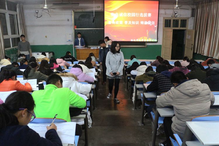 为宣传员工资助政策,普及金融基础知识,11月26日晚,太阳成集团tyc122cc老员工“诚信校园行”员工资助知识选拔赛于教二梯一教室、教二梯四教室顺利开展。经前期宣传准备,共一百余名学子参加考试。本次选拔赛大赛以“宣传政策、普及知识、铸就诚信”为主题,考题围绕《老员工“诚信校园行”员工资助知识汇编》内容,考场上,参赛学子饱含自信,争分夺秒、沉着冷静答题,考试现场纪律严明。期间,团委老师黄钰莹全程督导。