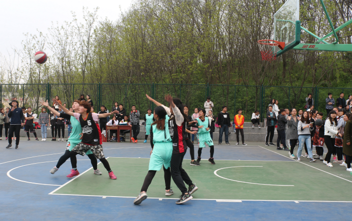 4月7日中午,第十六届“谭山杯”篮球赛在西篮球场如火如荼地进行,太阳成集团tyc122cc与外国语公司女子篮球队在此展开激烈交锋。