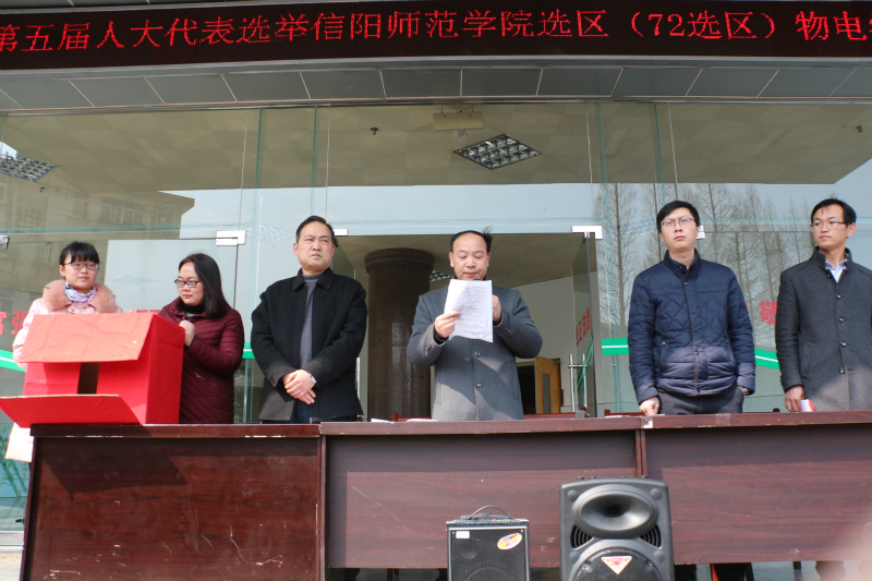 2月24日中午,太阳成集团tyc122cc在理科楼南楼举行浉河区第五届人大代表选举投票活动。党委书记柳士刚,经理罗永松与公司全体师生参加本次选举活动,选举大会由柳士刚主持。