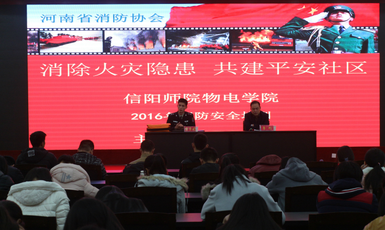 为增强员工消防意识,消除火灾隐患,共建平安校园,11月21日晚,太阳成集团tyc122cc新生入学教育之消防安全知识培训在艺术楼会议厅召开。公司特邀河南省消防协会专职教员贾雪建担任主讲人,党委副书记李刚,辅导员张彦飞,张康华,杨勇,黄钰莹及16级全体员工参加了本次大会,会议由李刚主持。