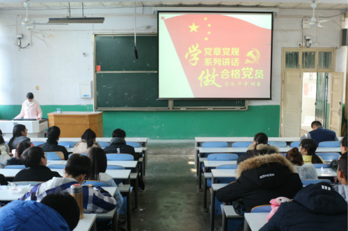 会议伊始,各班辅导员传达了公司“两学一做”学习讨论会会议精神,并围绕“党章党规”、“做合格党员”等方面展开论述。他们指出,“两学一做”学习教育是面向全体党员深化党内教育的重要实践,是推动党内教育从“关键少数”向广大党员拓展、从集中性教育向经常性教育延伸的重要举措,对巩固拓展党的群众路线教育实践活动和“三严三实”专题教育成果,深入推进全面从严治党、保持发展党的先进性和纯洁性具有重大意义,并鼓励学子们要着眼党和国家事业的新发展对党员的新要求,明确基本标准,在思想上和行动上严格要求自己,树立行为规范,争做合格党员。