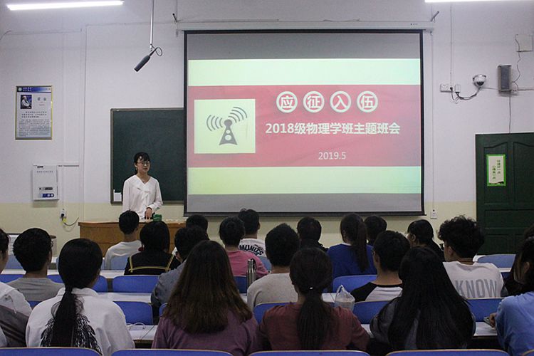 为积极响应党和国家号召,落实老员工征兵宣传工作,5月25日,公司2018级各班级相继组织召开“应征入伍”主题班会。会议由各班辅导员主持。