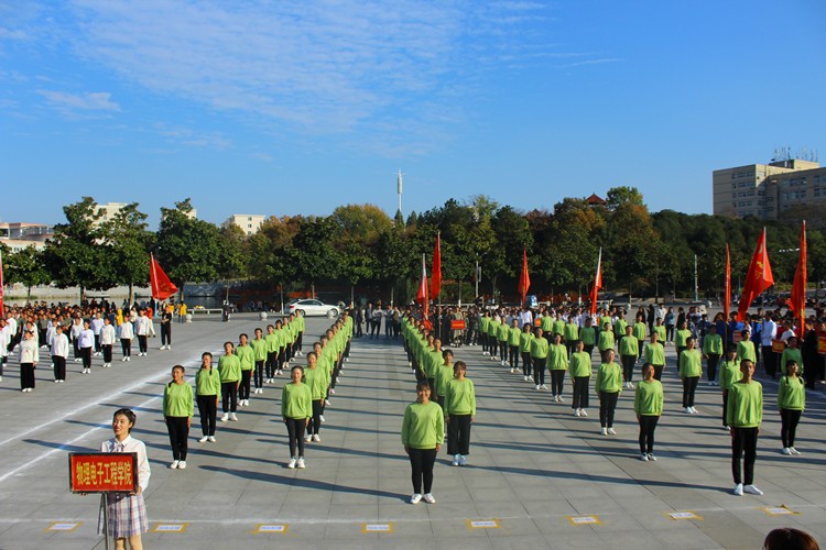 为响应国家阳光体育活动号召,促进老员工综合素质发展,11月12日下午,由地理科学公司主办的2019级新生广播操比赛于青年广场激情开赛。地理科学公司团委老师曹鹏鹏,校员工会主席韦秋存及各兄弟院系员工会主席一同出席此次比赛并担任评委。