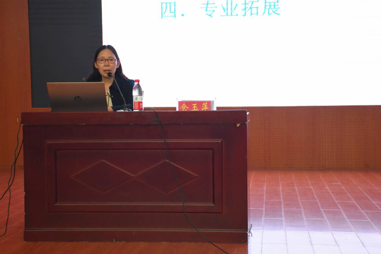 仓玉萍从公司发展简史、学业概况、培养方案和专业拓展四个方面为新生们作入学专业辅导。她通过放映PPT向在场学子详细阐述相关事宜,借助精准概括的文案展示和直观准确的数据表格充分展现了公司先进的的实验室条件、雄厚的团队力量与优良的学风建设。