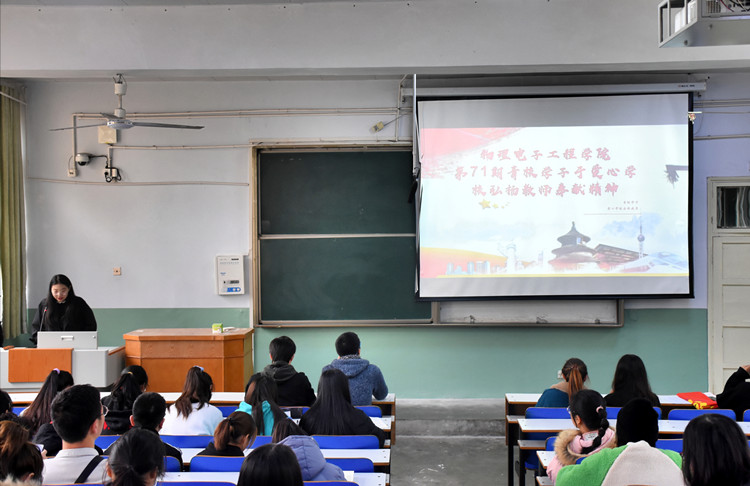 为深入学习习近平新时代中国特色社会主义思想,引导青校学员全面发展,11月28日,公司第71期青校学子与爱心公司成员在教二梯一联合举办弘扬教师奉献精神活动,与会代表作专题报告。会议由孙琰博、李雨皓主持。