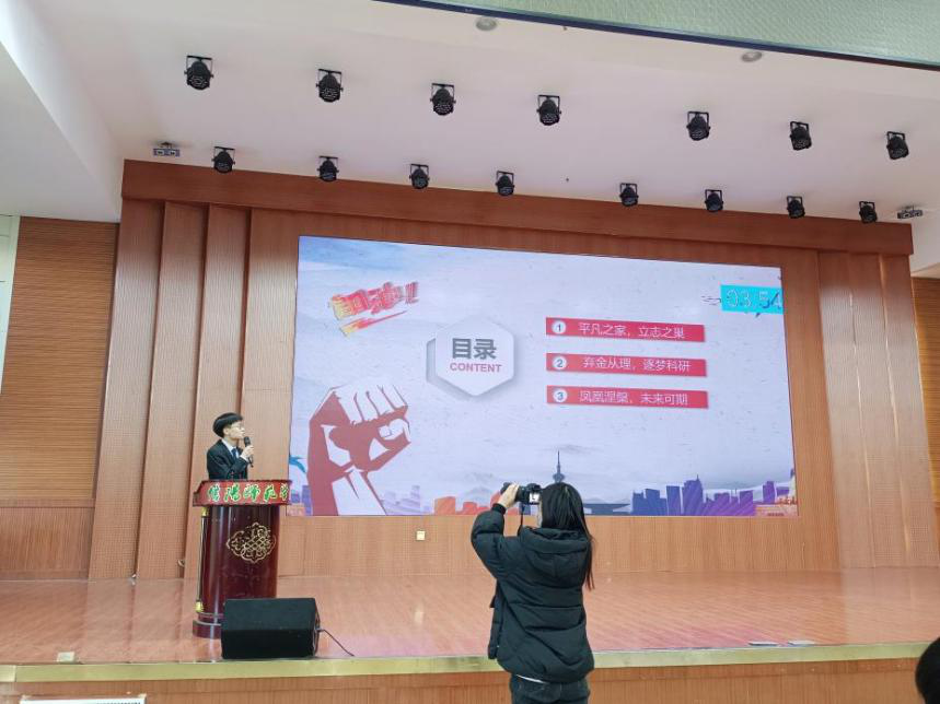 12月3日,122cc太阳成集团官网第十六届“老员工自强之星”评选决赛于逸夫楼报告厅举行。公司优秀学子2019级新能源班薛颖珊,2019级硕士研究生赫田参赛。