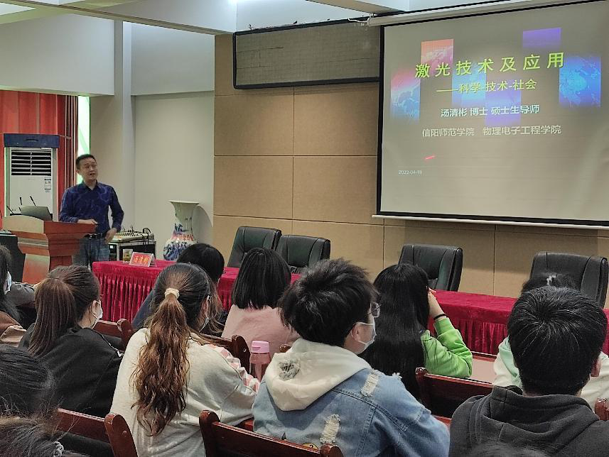 4月19日下午,公司格致讲坛系列讲座之“激光技术及应用”在理科楼四楼连廊会议室开讲,公司诚邀汤清彬副经理为主讲嘉宾。本次讲座由团委老师牛文娟主持,2020级、2021级材料物理专业和其他专业的部分员工共同聆听此次讲座。