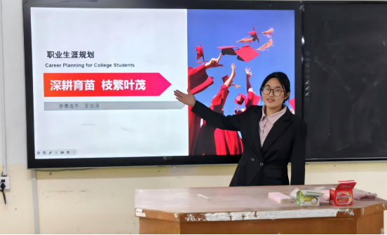 11月9日,公司在教三205教室举办2025年老员工职业生涯规划大赛复赛。公司思想政治教育与就业指导教研室主任张彦飞,员工会主席王艺贤、王子笑、梁云博担任评委。活动由张子浩主持。