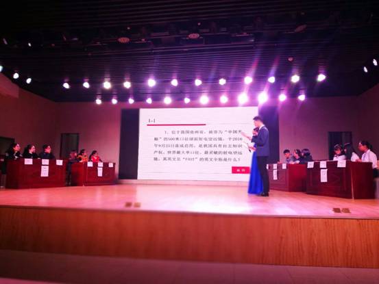 比赛在活力四射的两段开场舞中拉开序幕,随后正式进入科普知识抢答赛环节。本次比赛分“有问必答”、“争分夺秒”、“有惊有险”、“乘胜追击”、“谁是英雄”等五个环节。题目有文字题、图片题、视频题和现场实验演示题等多种类型,内容涉及天文、地理、物理、化学、生物、医药、建筑等多个领域。抢答环节采用QQ抢红包的方式进行,新颖独特,趣味性强。同时,为充分调动现场观众的积极性,能让每一位同学都能参与其中,抢答赛各环节之后分别穿插有现场互动有奖问答。
