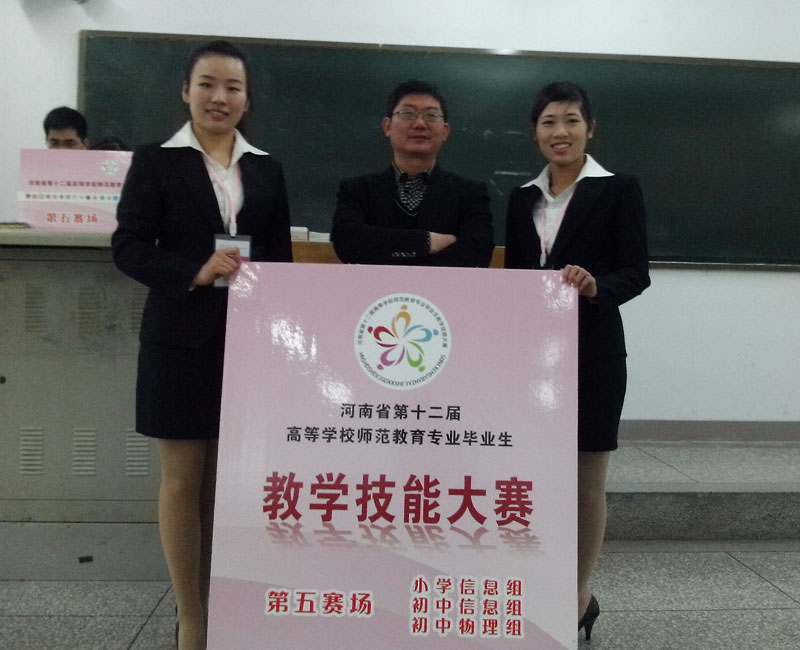 河南省第十二届高等公司师范教育专业毕业生教学技能大赛于2014年11月7-9日在河南师范大学成功举办,来自全省25所高校20个学科的221名选手分12个赛场参加了比赛。公司选派的张慧华、张诗笛两名选手在比赛中不畏强手、沉着冷静、技能娴熟、才艺突出,经过激烈角逐,最终于大赛中脱颖而出,在物理学科组比赛中分别排名第二和第四,双双获得一等奖,这是公司学子继2011年之后,第三次在该项大赛中同获两个一等奖的好成绩。另外,在参加本次全省大赛前的校内选拔赛中,张慧华同学还获得全校理科组第一名。