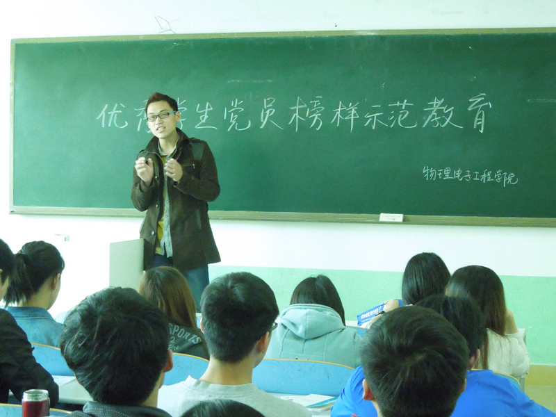 活动中,刘洋和马丹丹由表及里、由浅入深的从“怎样努力使党员更具先进性”、“党员的自我认识”、“关注时政”三个方面展开讲解。首先,刘洋以自己为例,讲述了怎样成为一个合格党员的心路历程。在讲述党员的自我认识时,他从分析延安整风运动、中共六大、三反五反运动、当前习近平主席提出的党的群众路线教育实践活动入手,向学员们讲述自我反思及自我锤炼对提升自我认识的重要性。随后,马丹丹就马航事件,向学员们指出了关注时政的重要性,并表示“关注这些不是没有用处,而是你没有使用”。