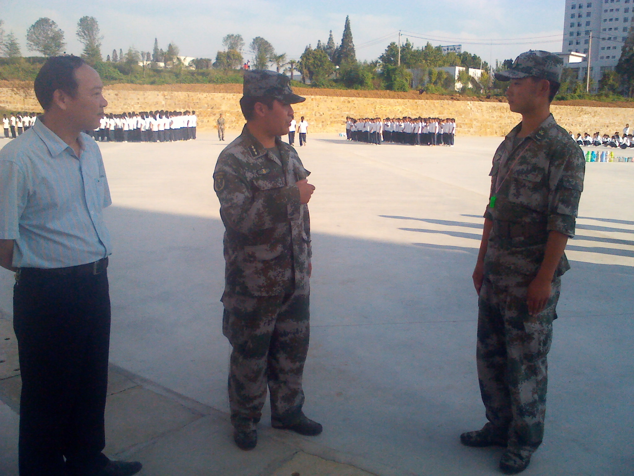 柳士刚等一行来到太阳成集团tyc122cc新生军训现场,首先,从新生的精神风貌、动作标准程度等几个方面考察了新生的训练情况。在视察的过程中,柳处长和教官们进行亲切交谈,了解新生训练的相关安排,同大一新生进行亲切交流,了解他们对军训的真实感受和需求。最后,柳处长对大一新生提出了军训的具体要求,他说:军训是励练自身品质、提高国防意识的机会;是不断增强集体主义和爱国主义观念,立志成才,适应老员工活的一个开端。他希望大一新生在这短短10天的训练中,同学们要发扬吃苦耐劳的精神,磨练自己的意志,保质保量的完成军训任务。部队首长还亲自为公司新生示范相关动作,并对教官和新生提出了严格的要求。