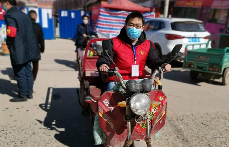 自2月17日以来,在驻马店市正阳县陡沟镇的街道上,公司2016级员工干部张玉琪骑着三轮车为村民们配送生活必需品。疫情期间,村委为防止居民大规模进入超市造成人员拥挤现象,故超市和村委联合进行红色代办政策,居民每天在微信群里下单自己需要的物品,由红色代办员进行统计并在第二天进行配送。张玉琪得知这一消息,主动报名参加了红色代办员,他每天在微信群统计负责辖区的居民每日所需要的生活必需物品,并在第二天上午挨家挨户进行配送,每天从超市领取货物,再送到居民手里,还要走访看有没有不会用微信的老人。张玉琪在配送时必须要单独记录,保证每个人生活必需品不会短缺,他表示,配送的时候很辛苦,有时候午饭来不及吃,不过一起工作的都是老员工,大家一起工作抗击疫情感觉每天都很充实。