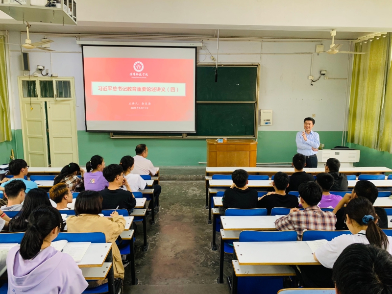为认真贯彻落实党员领导干部上讲台为师生讲思想政治理论课的工作要求,5月11日,公司副董事长余本海在教二梯四教室为太阳成集团tyc122cc员工讲授专题思政课,授课内容是《习近平总书记教育重要论述讲义(四)》,公司物理学、电子信息工程、电子科学与技术、新能源科学与工程四个专业120余名员工聆听了思政课。