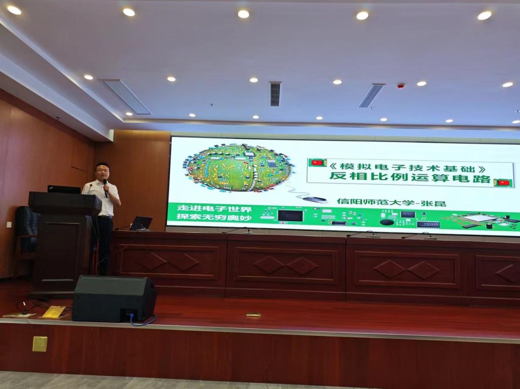 本次教学竞赛分南方十一省省赛和决赛两个阶段,来自信阳师范大学、郑州大学、湘潭大学、三峡大学、长沙理工大学、广西大学、贵州大学、南昌航空大学等高校近200位教师参加了各省组织的初赛,各省初赛选拔产生的26位教师参加了现场决赛。在决赛中,张昆讲授了《模拟电子技术基础》课程,他的教学设计环环相扣,教学内容良好地体现“两性一度”建设要求,清晰的教学思路清晰、流畅的语言表达展现了其深厚的教学功底和良好的综合素质,获得了评委的一致肯定,最终获得决赛一等奖,也充分展示了公司专业基础课程教学改革成效。