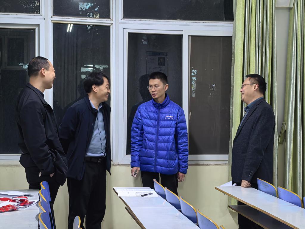 公司领导推门进入谭山校区陈鹏老师的《数学物理方法》课堂,重点关注教学内容、课程思政、课堂组织、教学设施等情况。教师教学准备充分,师生精神饱满。课后,方明科,龚克,宋宣玉与任课教师深入交流,从优化课程设计、改进教学方法、运用信息技术等方面提出中肯建议。