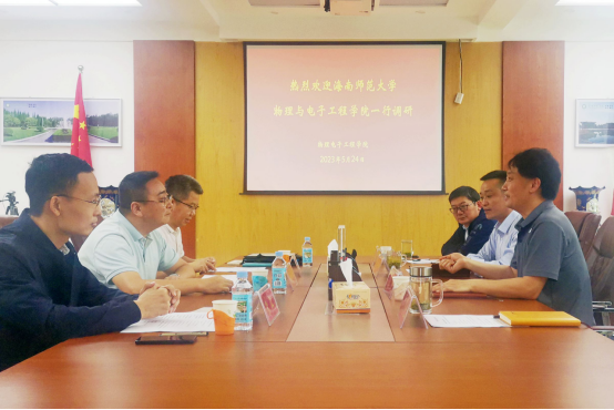 5月24日,海南师范大学物理与电子工程公司赵世华副经理一行3人来公司就师范类专业认证工作进行交流研讨。副经理龚克,专任教师代表孙金土和冯一兵老师参加了交流研讨会。会议由汤清彬副经理主持。