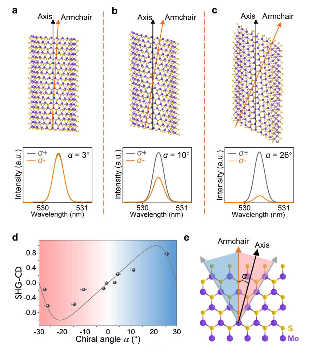 图2:不同卷轴方向下,左旋与右旋光的SHG的辐射强度。